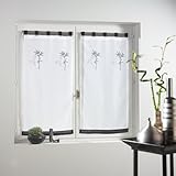 | ✚✚✚ 2 voiles droits 60x90cm brodés BAMBOU blanc noir Paire de voiles droits à passants brodés BAMBOU blanc noir, largeur 60cm, hauteur 90cm, tissu 100% polyester.