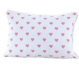 Homescapes - 100% Coton - Amour et Coeurs - Coussin Rembourré - 30 x 50 cm Rectangulaire - 12 x 20 Pouces - Rose Blanc - 100% Coton - Housse Coussin Bien Rembourré - Lavable