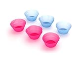 Mastrad F44134 Lot de 6 Moules Droits Pliables à Muffins et Tartelettes 3 Bleu et 3 Framboise Translucide
