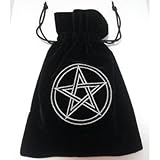 Luxueux sac pour cartes de Tarot/Oracle en velours noir avec cordon broderie Pentacle