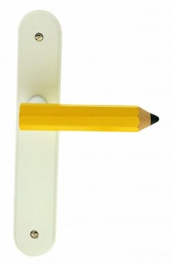 1/2 poignée de porte intérieure réversible enfant en bois blanc et jaune sur plaque BdC entraxe 195 mm, CRAYON Hexa