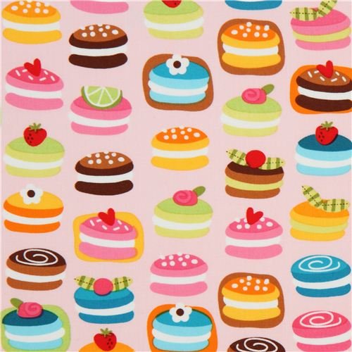 Tissu Robert Kaufman kawaii rose pâle, macarons multicolores (par 0,5 m multiples)