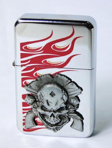 Briquet tempete essence métal chrome SKULL relief paire de pistolet COLT DUEL