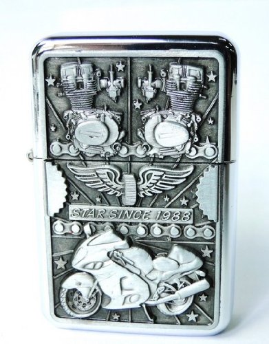 Briquet tempete essence métal MOTO RACING BIKER wings chaine relief motor STAR course