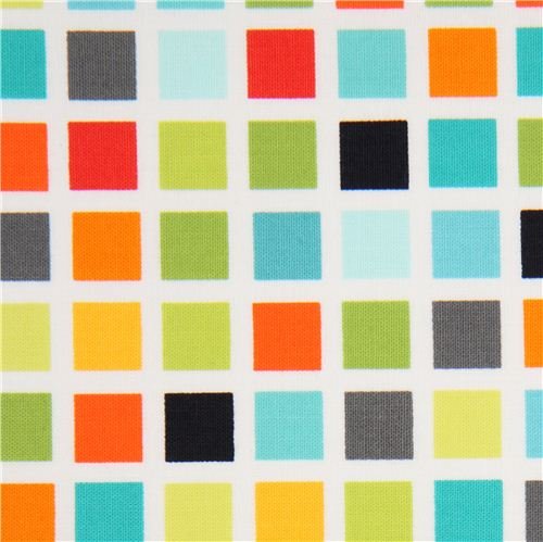 Tissu Robert Kaufman blanc avec un dessin quadrillé coloré