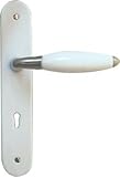 1/2 poignée de porte intérieure réversible design en porcelaine blanche et zamak Nicke mat sur plaque Clé L entraxe 195 mm, ATHENA
