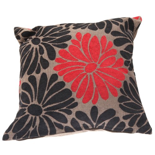 Housse de coussin à motif floral (5 options) (coussin non inclus) (45cm x 45cm) (Noir/Rouge)