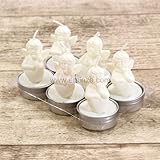 | ✚✚✚ Lot de 6 bougies chauffe plat anges Ce lot de 6 bougies chauffe plat ange illuminera votre table ou tout autre décoration. Elles mesurent 5,5 cm de haut et 3,6 cm de diamètre. Couleur blanc.